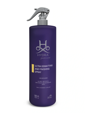 The Hydra Ultra Dematting and Finishing Spray is a high-performance grooming solution designed to effortlessly detangle knots and mats while enhancing the coat’s final appearance. Its lightweight formula helps reduce breakage, adds softness and shine, and improves manageability during brushing and finishing. Ideal for both professional groomers and pet owners, it leaves the coat smooth, silky, and perfectly polished without weighing it down.